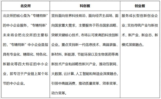 四、目前北交所、科創(chuàng)板、創(chuàng)業(yè)板實(shí)行注冊制,這三者之間又有什么樣的區(qū)別呢?